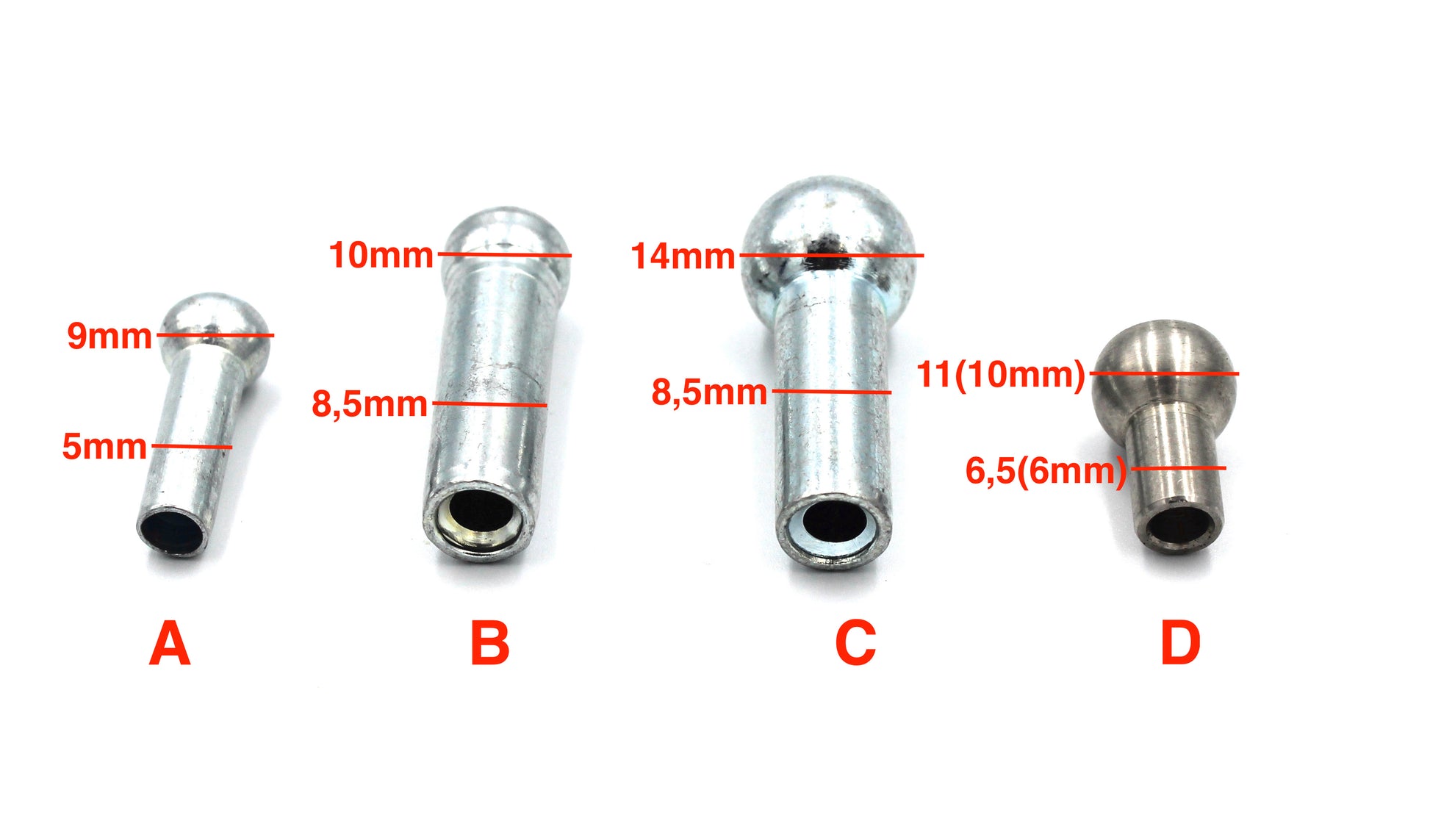 - mitat, vaihtoehto B: koko pituus: 33mm, pallon halkaisija: 10mm, putken ulkohalkaisija: 8,5mm